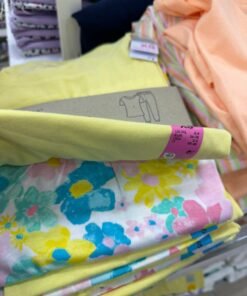 طقم بيجاما بريمارك بلون أصفر الكناري الجميل و بنطلون متعددة الألوان 100% قطن و جودة ممتاز